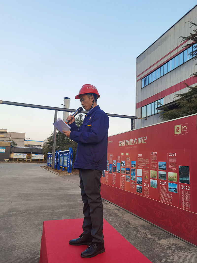 首先公司总经理助理罗文引领公司全体员工作《2024年工作宣言》,这是兴天元钢桥人的心声、承诺和行动标准,围绕安全、质量、成本等努力创造更好成绩。