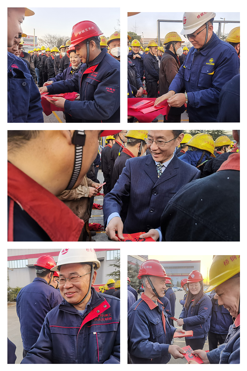 随后,集团唐明董事长带领高管向全员发放新年红包和礼物并致辞。我们共同经历了许多挑战和困难,在逆境中展现出公司的强大生命力和不屈不挠的精神。新的一年已经到来,我们要做的,就是继续前行,不断创新,不断超越自我,把安全、质量、成本做到位,为我们的客户提供更优质的产品和服务。我们要以更加昂扬的斗志,更加饱满的热情,更加坚定的信念,踔厉奋发勇毅前行。最后,董事长再次向全体员工表示最诚挚的感谢和新春祝福。