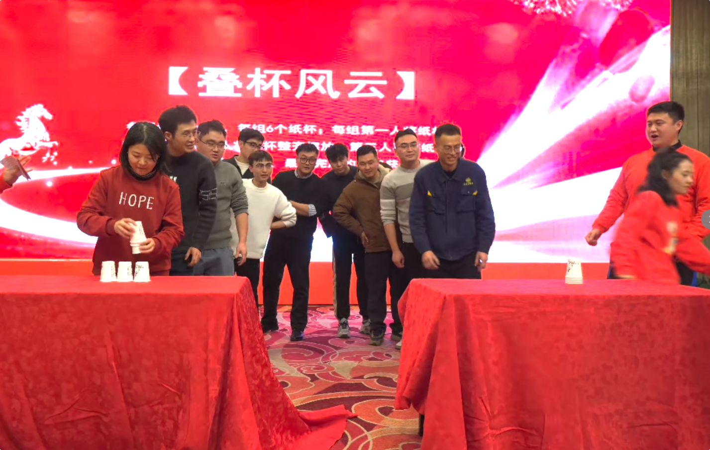 抽奖环节间隙,“马不停蹄”“叠杯风云”两场互动游戏轮番上演。“马不停蹄”游戏中,参与者纷纷抢占踏步框,凝神专注,奋力保持原位,伴随着大屏幕的倒计时,现场不时响起阵阵加油与调侃声;“叠杯风云”则是多人参与、分为两组展开比拼,各组队员接力叠纸杯,指尖翻飞间快速搭建整齐造型,两组你追我赶,好不热闹。大家凝神聚力、争分夺秒、默契配合的瞬间,充分展现了团队的活力与凝聚力。